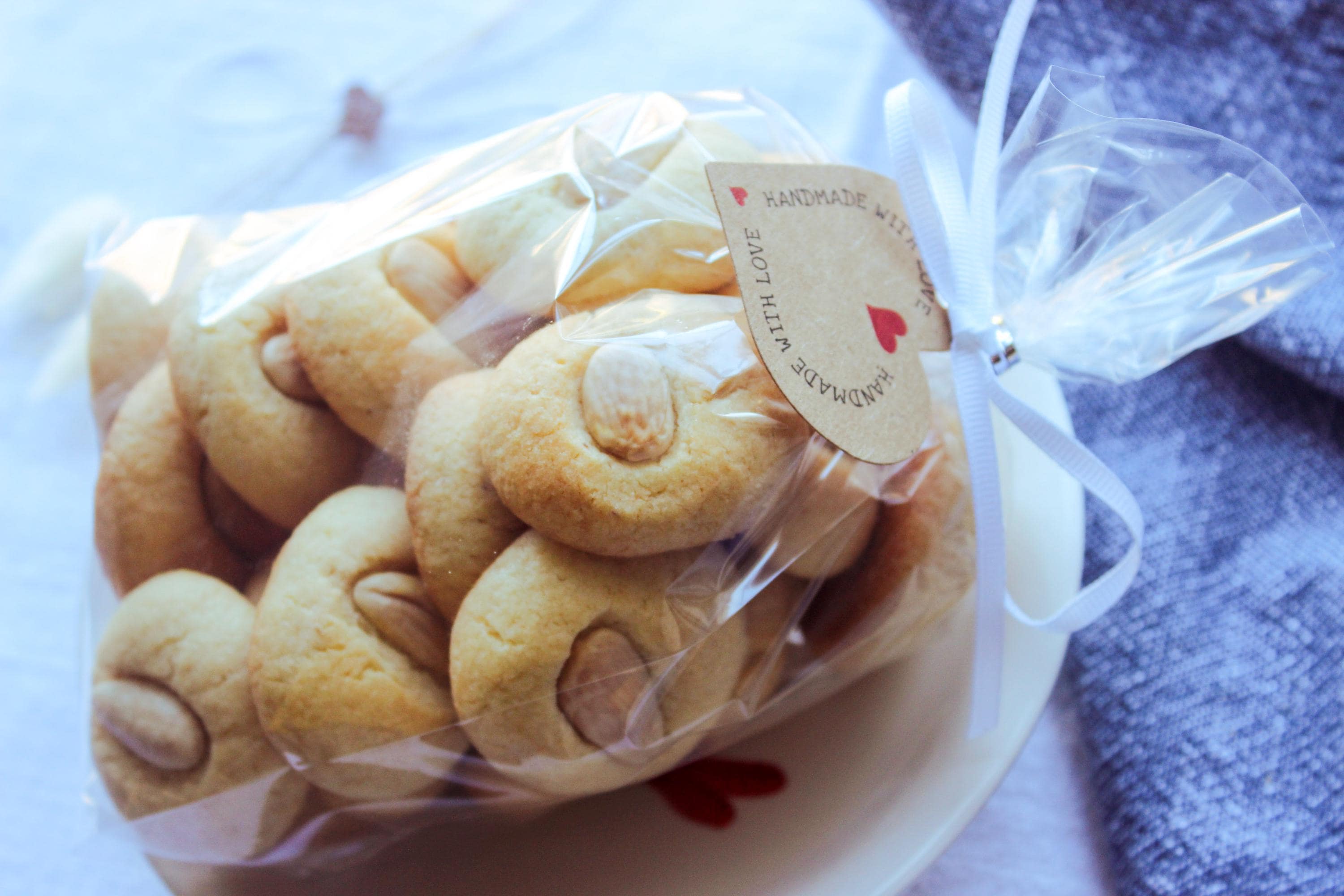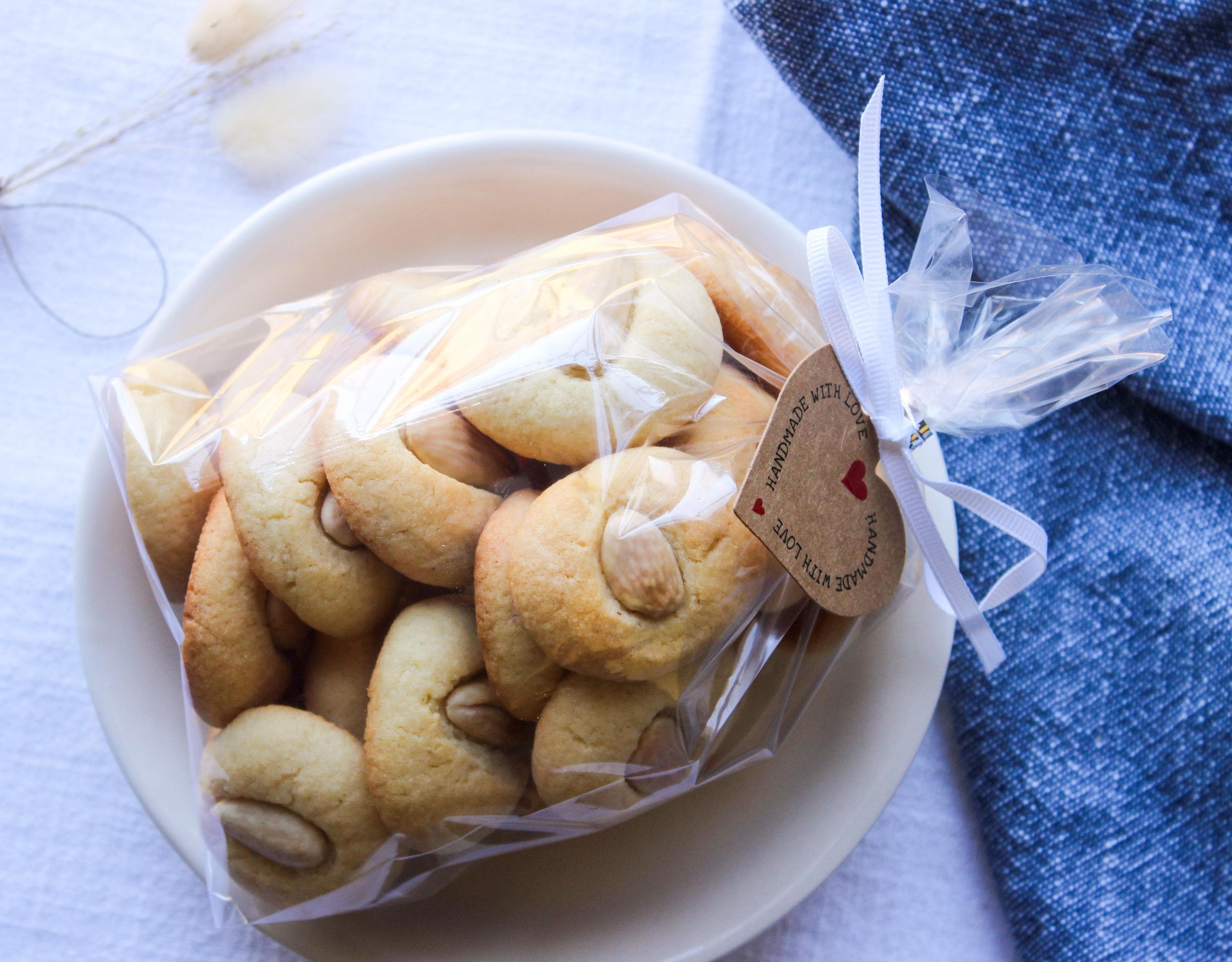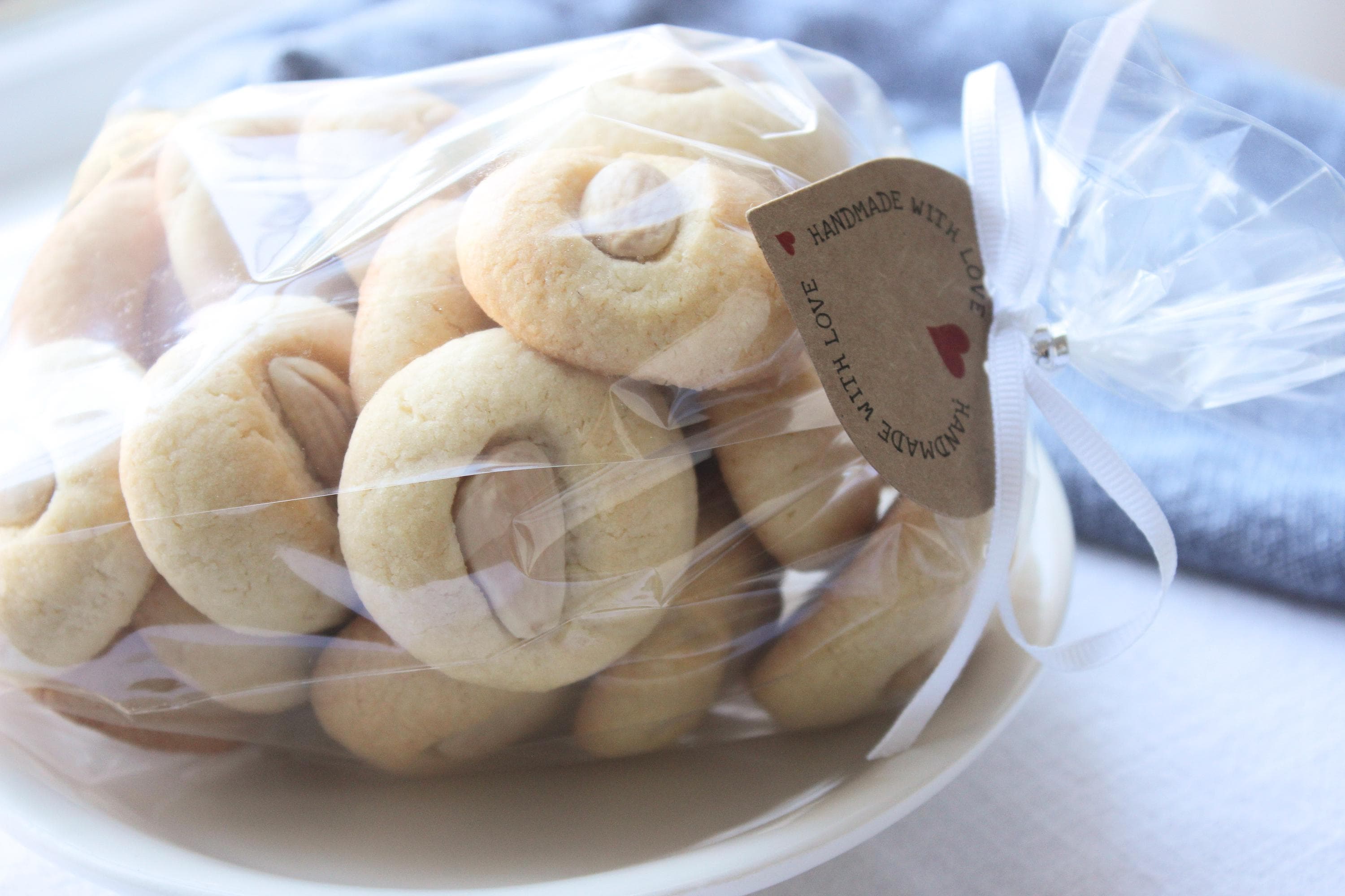 Details: - 25 cookies per bag - Made with European butter, organic eggs, and almond flour - Lightly flavored with a hint of Amaretto - Topped with crunchy whole almonds - Perfect for gifting or personal enjoyment