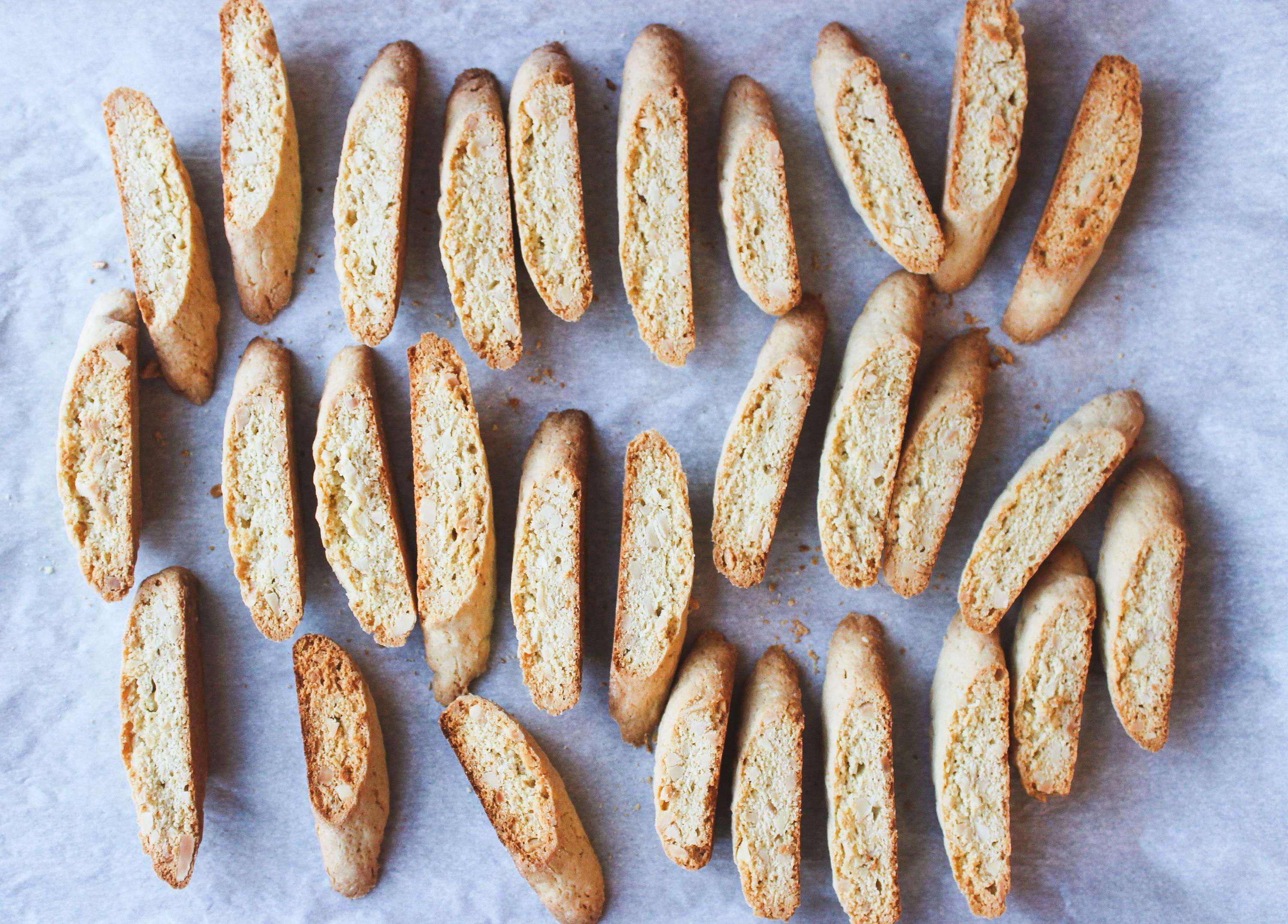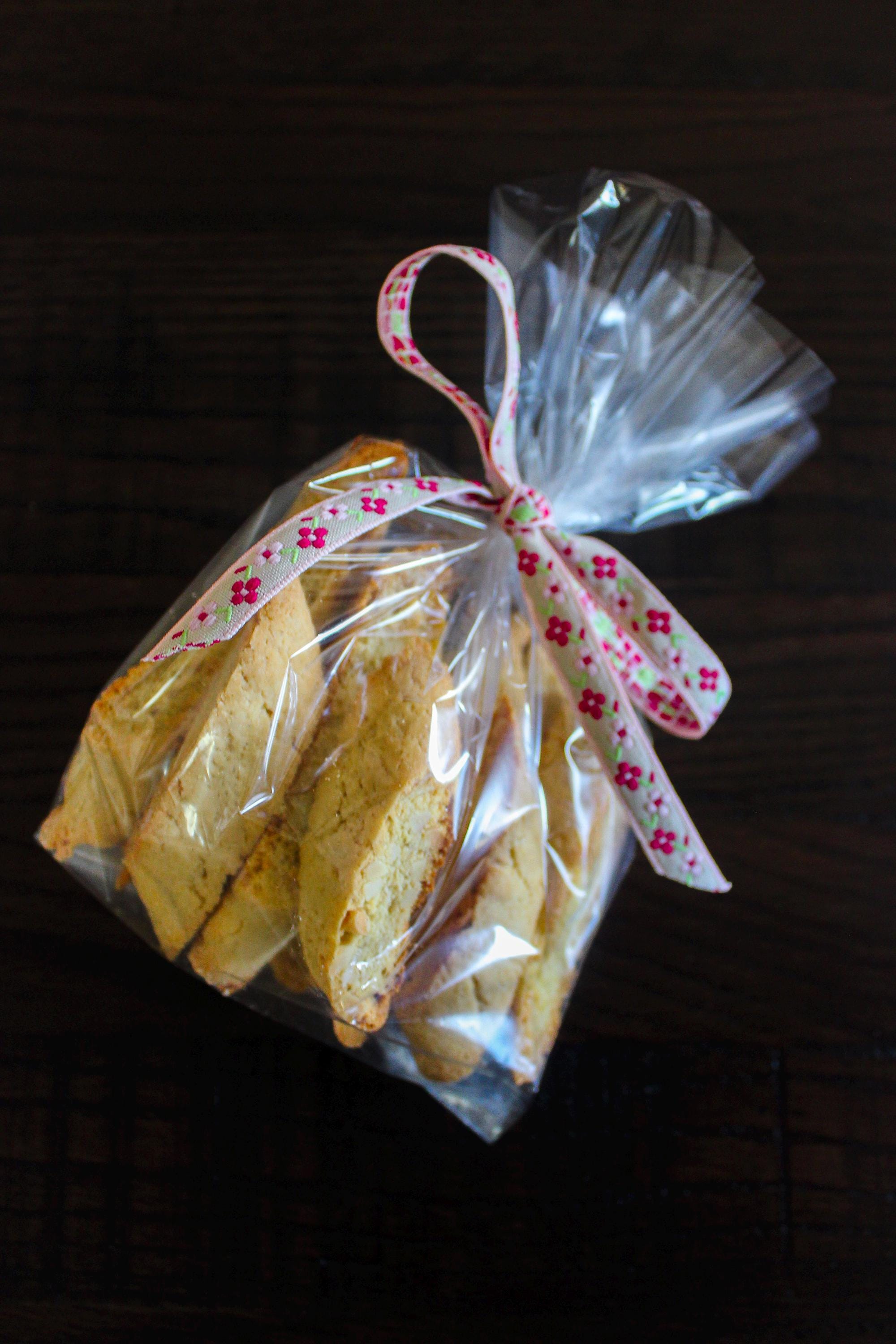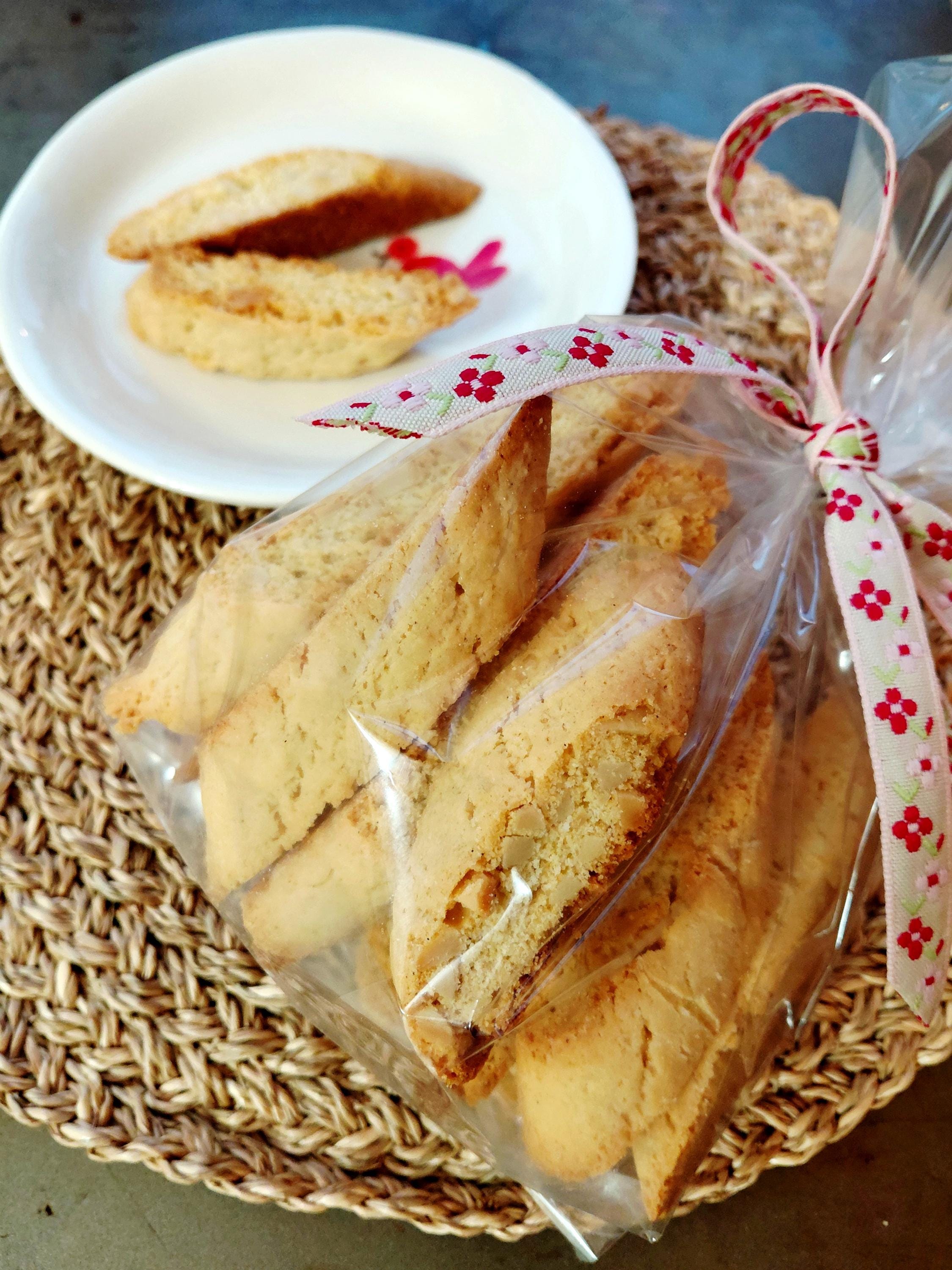 Crisp, golden, and made without shortcuts. Our almond biscotti are baked with slivered almonds, real vanilla, and European butter-ingredients chosen for flavor, not convenience. The slivered almonds give more delicate, even distributed bite than whole almonds. Lightly sweet by design, they let the nuttiness and warm vanilla speak for themselves. They travel beautifully, keep well, and make a genuinely lovely gift. Each cellophane bag contains twelve cookies: ideal alongside an espresso, a glass of vin santo, or simply on their own. Simple pleasures, done properly.