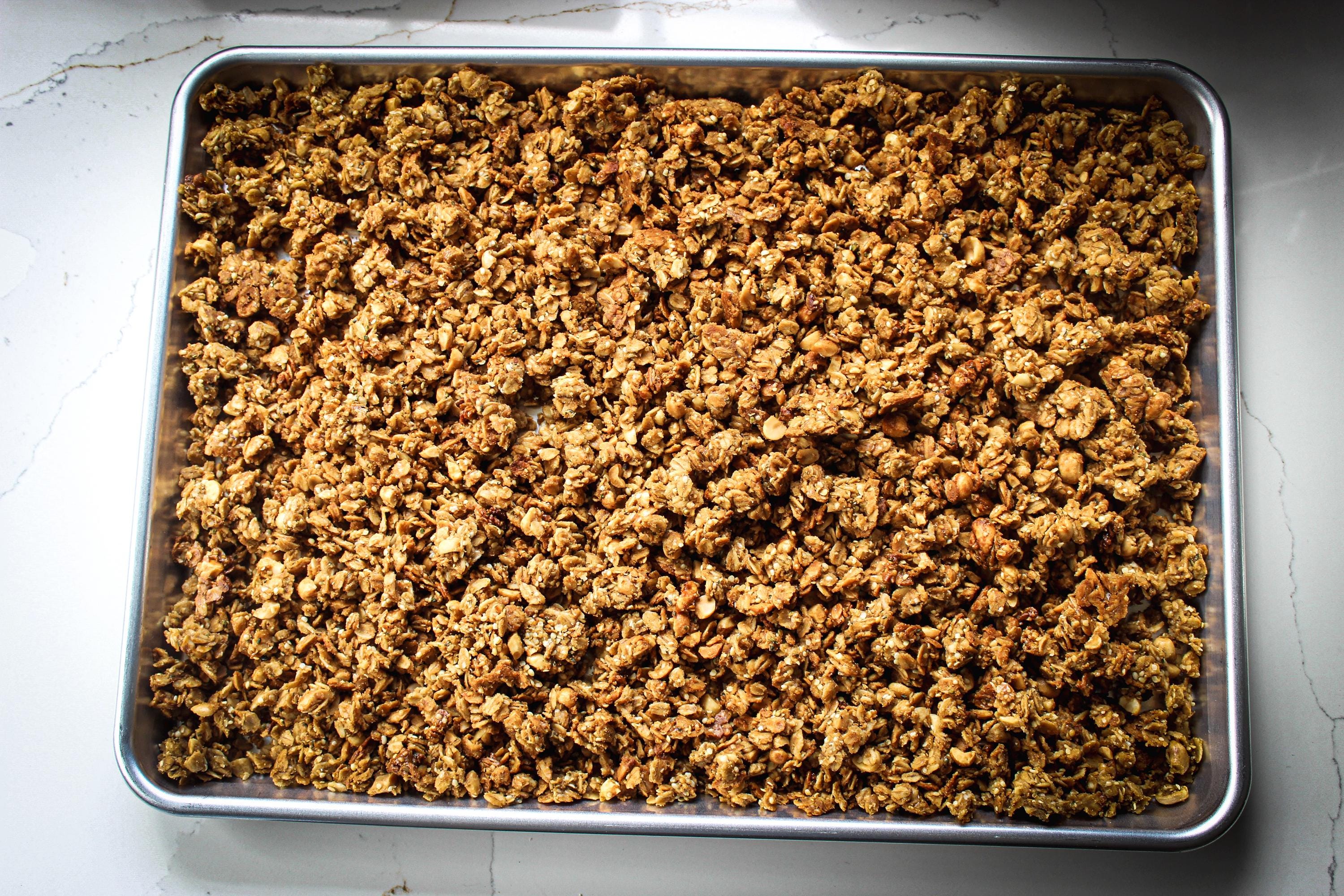 Big, satisfying clusters of rolled oats are tossed in good olive oil, creamy peanut butter, and a touch of honey-then finished with a pinch of kosher salt that makes everything taste more like itself. Egg whites and hemp seed bring a quiet but meaningful protein boost, binding those gorgeous clusters together while adding staying power to every bowl.