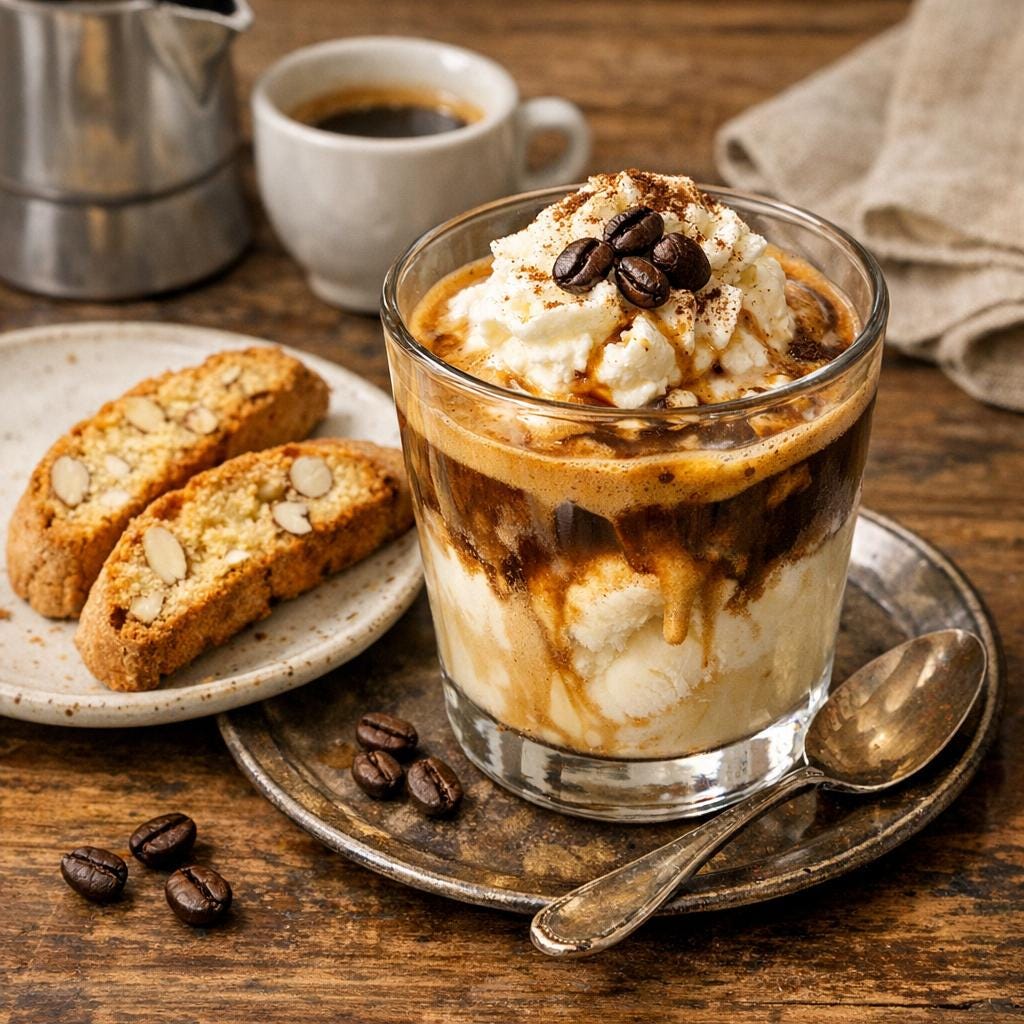 Affogato, meaning ‘drowned’, perfectly describes the act of pouring a strong shot of hot espresso over a scoop of ice cream. Whether it’s fior di latte, vanilla, chocolate, or any flavor you prefer, the magic happens as the heat slowly melts the cold. First, you savor it with a spoon, then enjoy the last rich drops straight from the glass. The sweet creaminess of the ice cream and the bold bitterness of the coffee should balance each other beautifully.